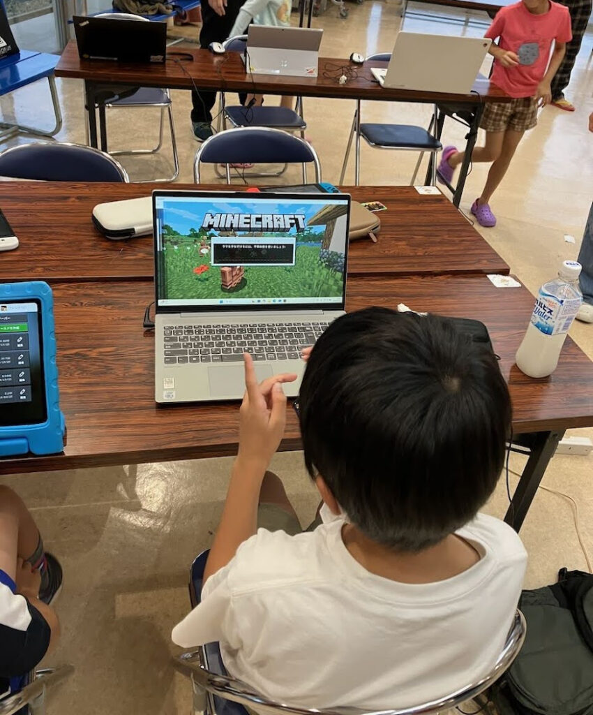 この日はニンジャ全員がマイクラでした。初めて参加してくれたニンジャ兄弟は、常連ニンジャといっしょに、インベントリをいっぱいにする競争をしていました。また別のニンジャ姉妹はいっしょに建築を楽しんでしました。マイクラは建築をするだけでも工夫やアイデアが必要なのでとてもよいと思います。